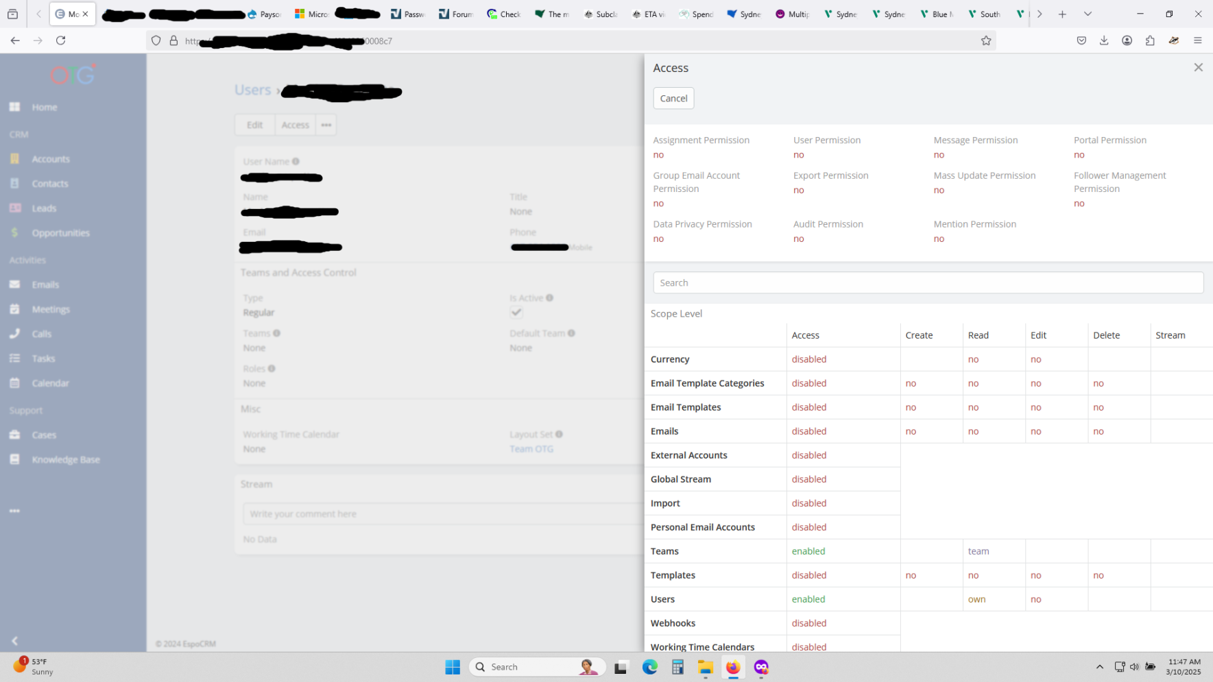 If you want the inbox, calendar, etc. dashlets to be displayed in the list of available dashlets for a user, you need to correctly configure the role for him/her, that is, give access to emails and the calendar accordingly. You can learn more about access and role settings here: https://docs.espocrm.com/administrat...les-management.
