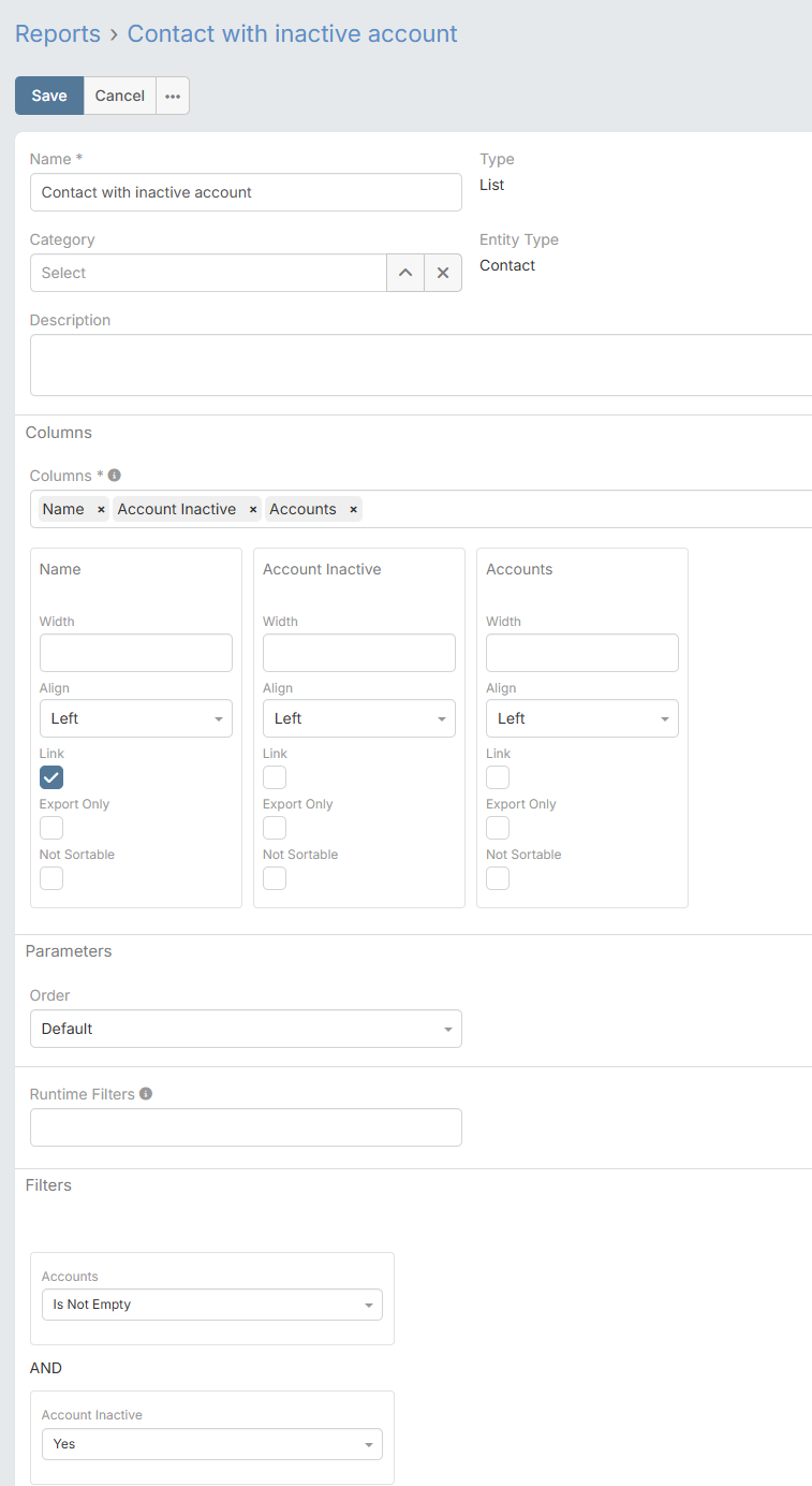 In the current version EspoCRM and Reports from the Advanced Pack shows Account details with a list of contacts who whenever were associated with the account (including those who worked there years ago and don't work there anymore).