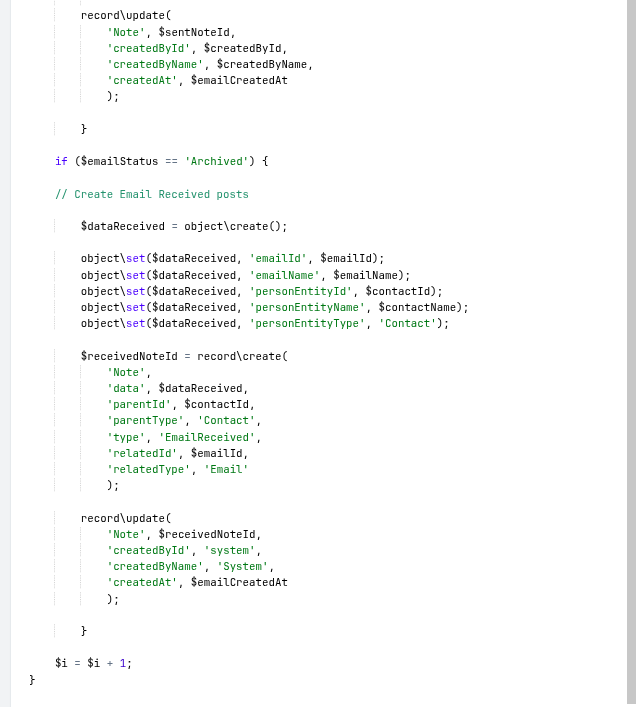 Unfortunately, this code does not insert the mails chronologically into the stream, but simply adds them. These new emails are added in chronological order, but independently of the existing notes. I hope I am making myself clear.