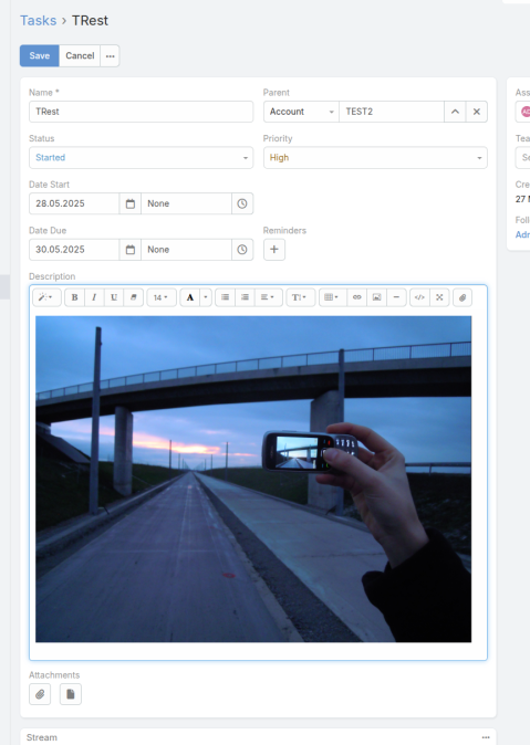 I noticed that in EspoCRM, when you paste a file (like an image or document) into a text field, it's handled and attached properly to the related entity (e.g., added to the attachments field).