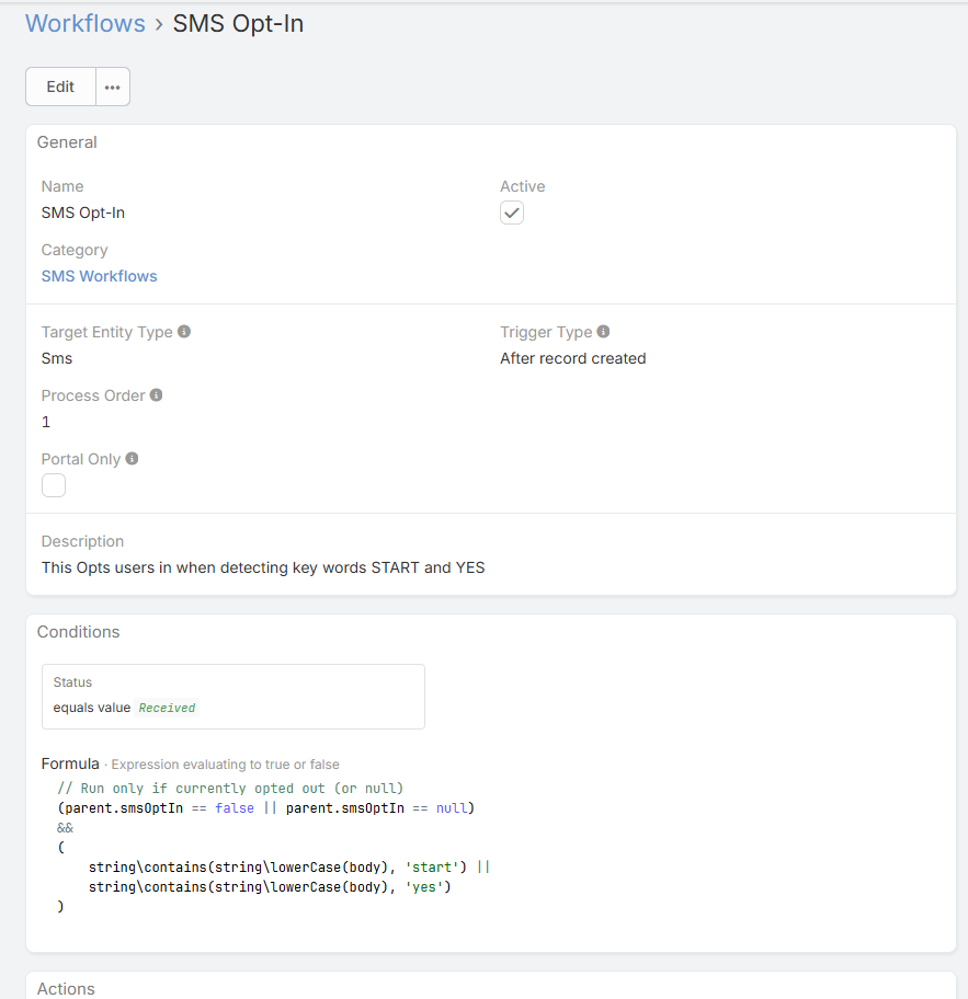 I created 2 workflows for sms, one to opt in users and send an sms message saying a "you have opted into sms, text stop to opt-out" message and vice versa. I have other SMS workflows that work just fine, but I cannot figure out how to get these 2 functional. The logs shows they are being called, but it keeps telling me the workflow conditions where not met
