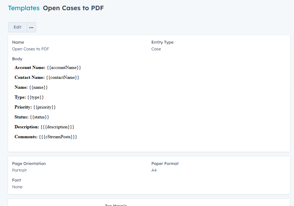 I’m trying to generate a PDF report of Cases/Projects in EspoCRM with custom HTML styling.
