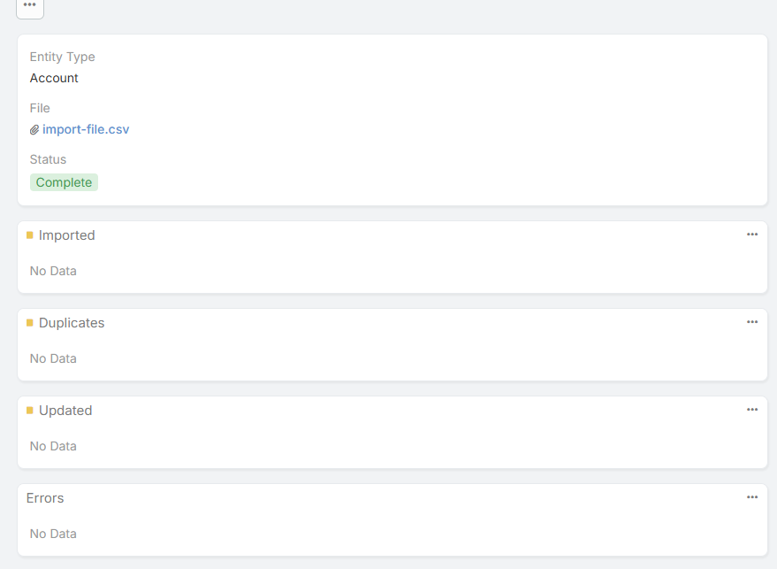 However, when I import a bigger file with multiple entries, same formatting and correct matching, nothing gets updated or imported and no errors are shown (!), see screenshot.