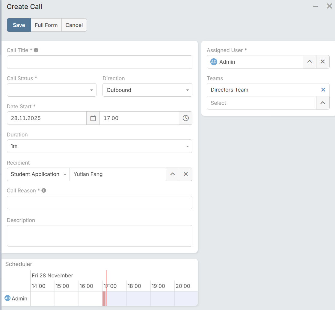 When the user views the Student Application then can log calls via rthe History part of the screen