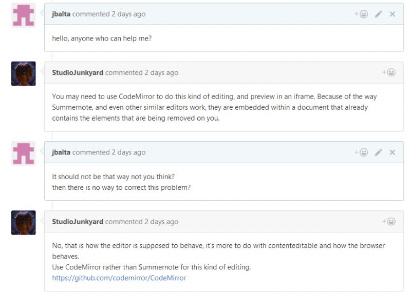 But when I insert the text editor removes some of the code.
