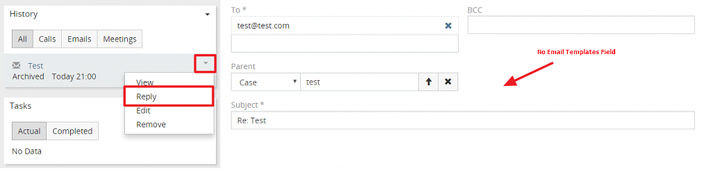 - Email templates are GREAT. However, the "Email Template" field does NOT appear when responding to a case: