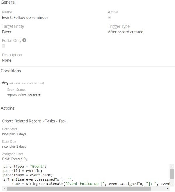 I have an entity Event with a workflow that has Tasks auto-created for it when a new Event is created. Simple.