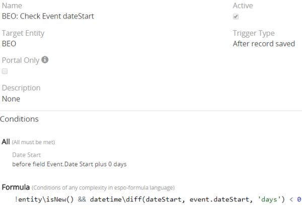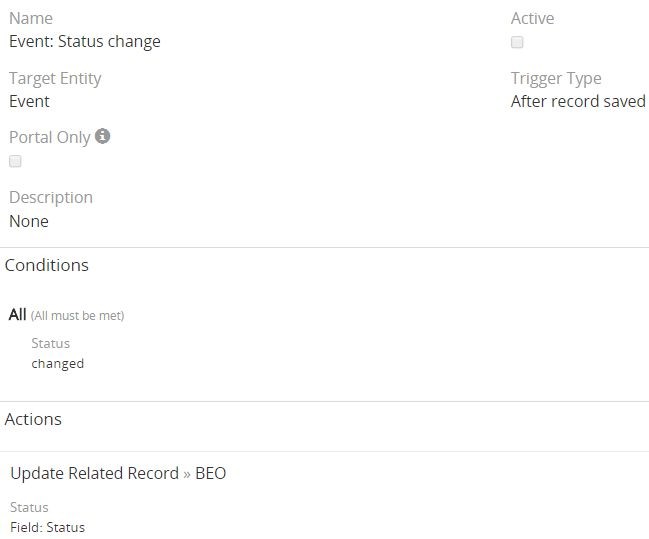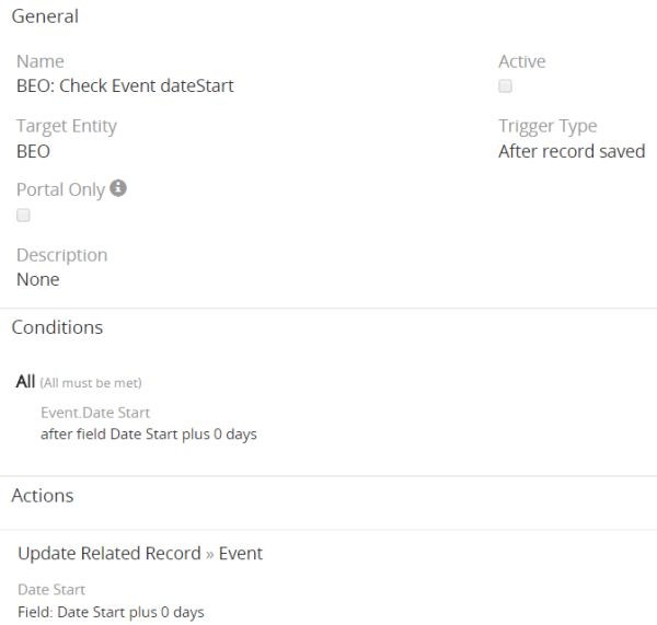 Now, I have another entity called SUB that is linked to Event in one-to-many relation. When a new SUB is saved there is a workflow that "Update Related Record ยป Event", the parent Event. However, when the related Event record is updated using that SUB workflow the workflow that creates the Tasks when a new Event is created is triggered and new Tasks are created AGAIN! So now whenever a SUB is created new Tasks are created for the parent Event although these tasks should be created only once when a new Event is created!