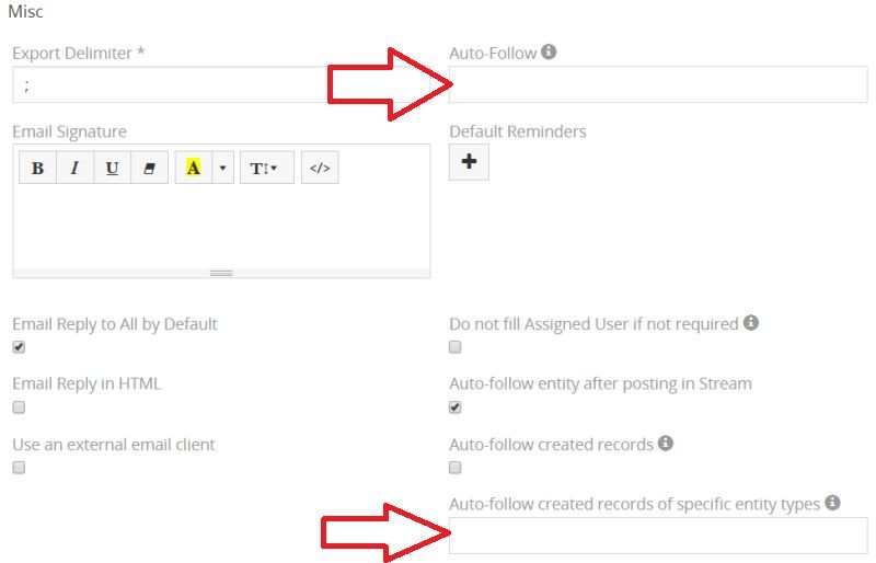 The first one - Automatically follow ALL new records (created by any user) of the selected entity types. To be able to see information in the stream and receive notifications about all records in the system.
