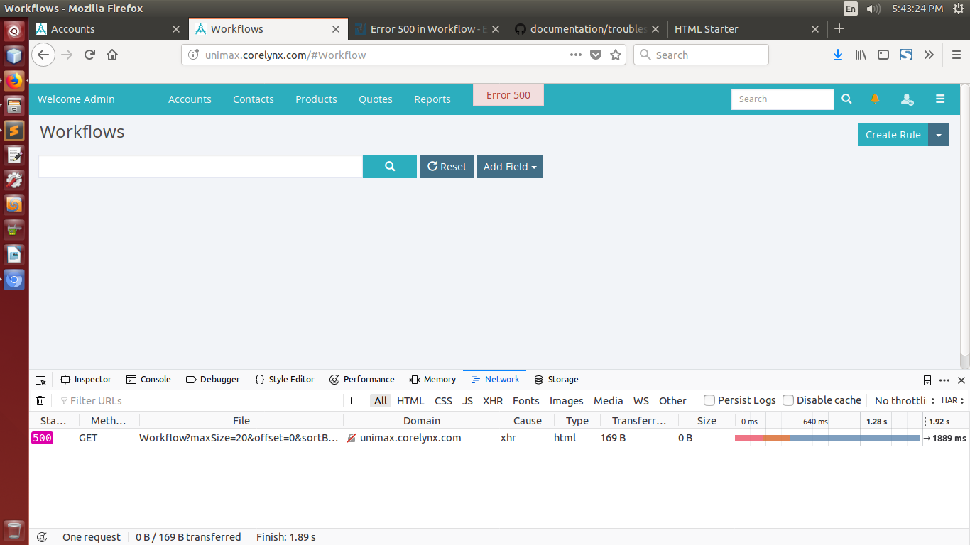 Error 500 in Workflow