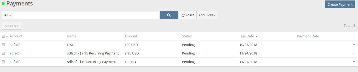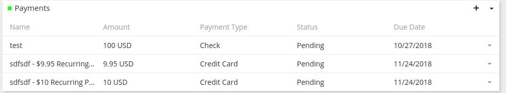 I have created a custom entity Payments, to keep track of recurring payments. Everything works well with it, except when I create new entries, the Name field is not clickable. The only way to view the entry is to use the down arrow on the right and click edit or view. My other entities aren't like this. This happens when using workflow or adding payments directly.