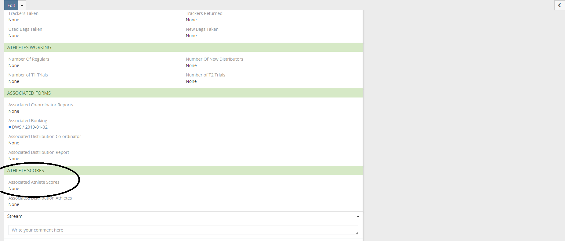 So in Entity Co-ordinator Report (1), we have a relationship with entity Jobs Distribution (2) & athlete scores (3).