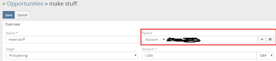 Hopefully somebody can help....I am linking opportunities to parents and the parent maybe an account or it maybe a Lead. If I have a defined link in opportunity to a parent (see below) then it works fine -