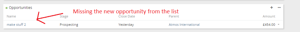 BUT this means that I have to have another box on the opportunities page to link it to a lead which I don't want to do. Instead when I link to a multiple choice parent where the selection is Account or Lead, it will not automatically appear in the Opportunity list in the Account