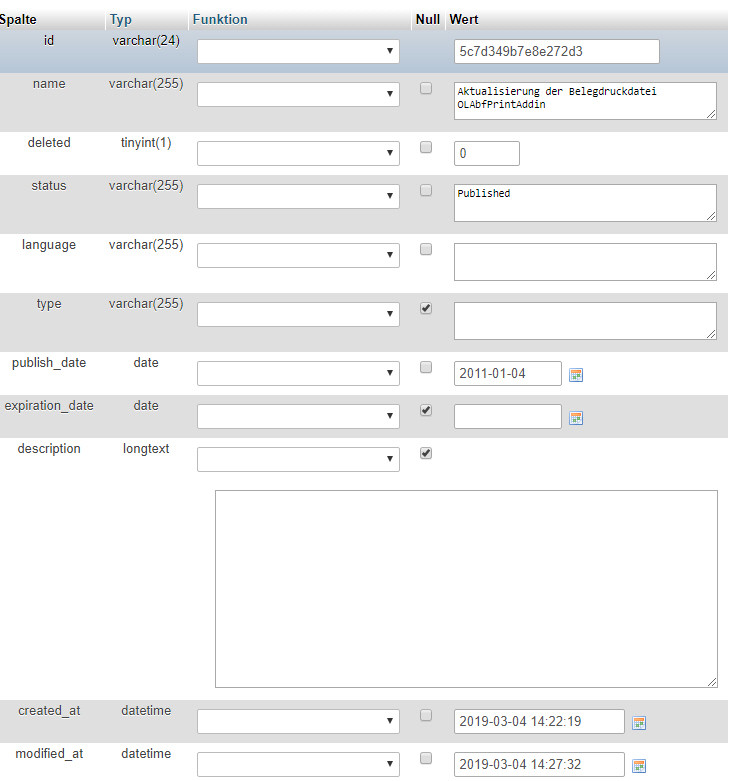 When entering a new article in the database, the message appears.