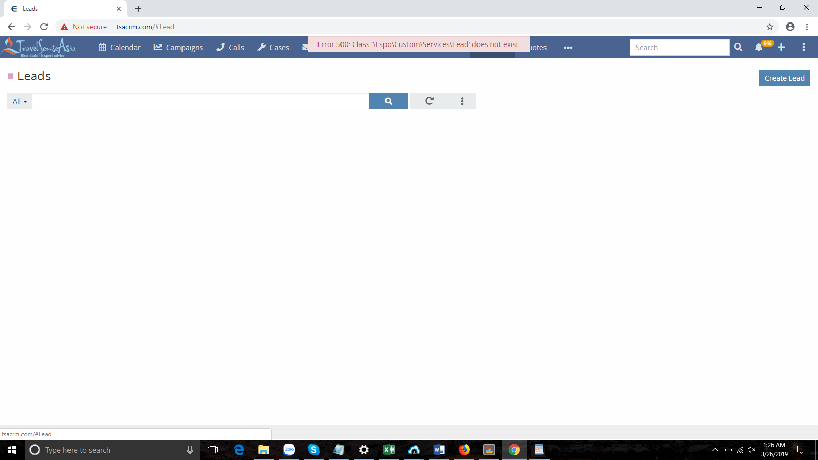 I cannot access Lead with this error log