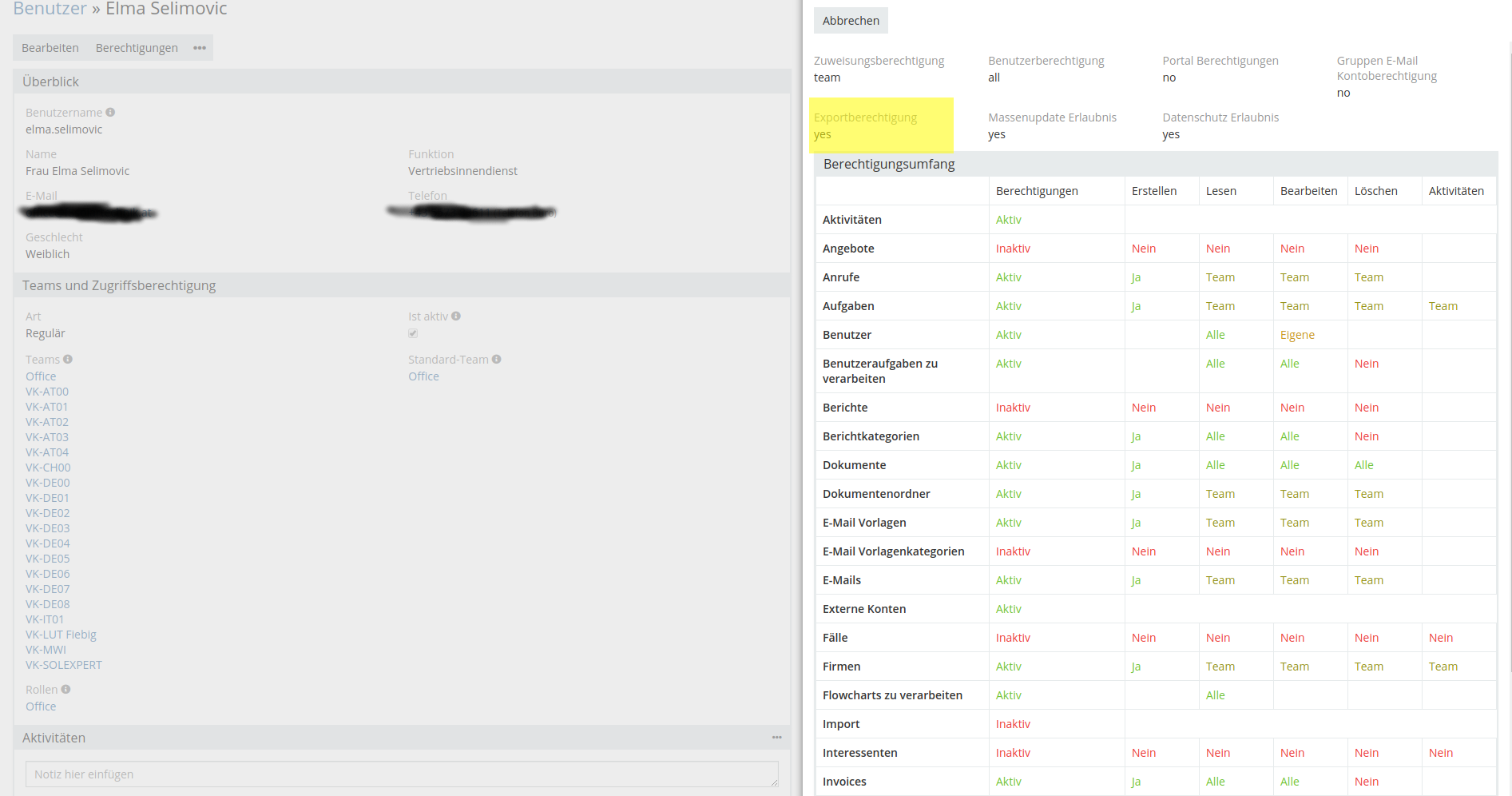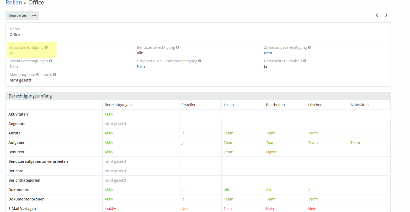 We have a user with export rights. This user is assigned to a group with export rights as well.