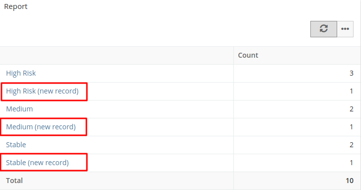 1. I'd like the report to show the total accounts under the risk level at that time, not just the additional accounts that have been added or changed