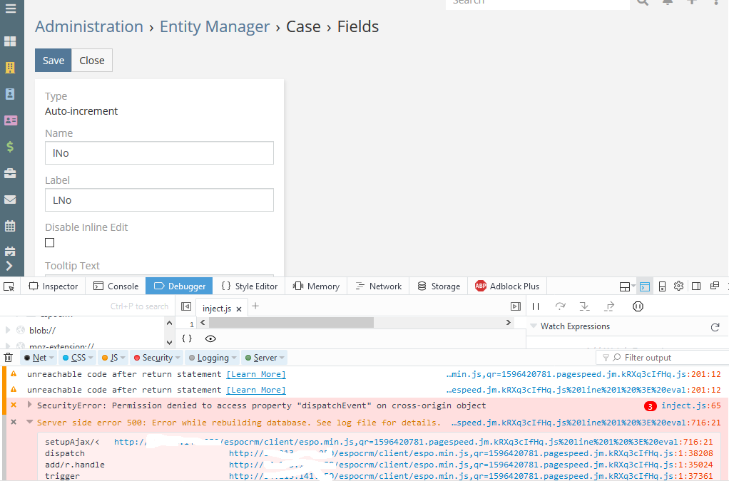 Error showing F12: SecurityError: Permission denied to access property "dispatchEvent" on cross-origin object