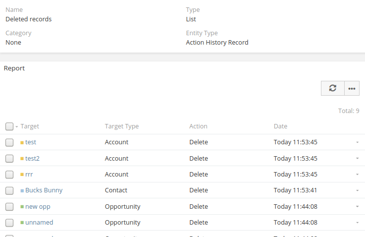For those EspoCRM users who are using not cloud instance, there is a possibility to activate the Action History Record entity for Report (required json file code change). Due to this, you might fetch a list of deleted records (see screenshot).