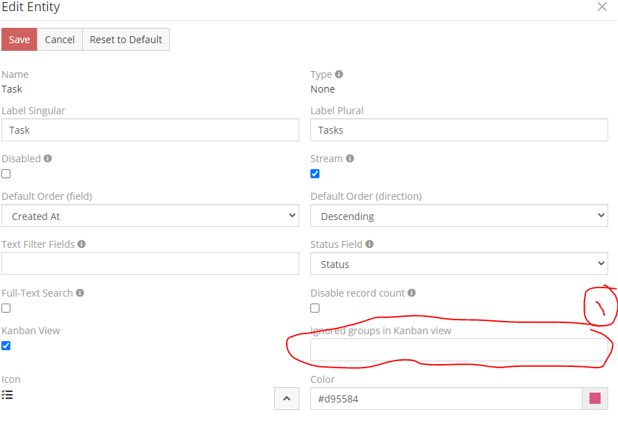 When I edit entity field > tick Kanban view > Ignored groups in Kanban view