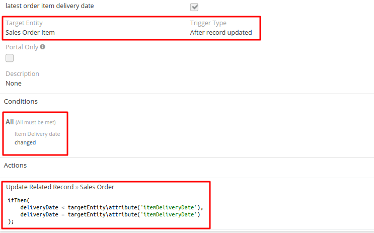 I want to make it so a field "Delivery date" in my case would be filled in automatically according to related records "Order items". The value that would be placed in the "Delivery date" should be the latest date from those related "Order items" (Every order item has its own delivery date and I need to take the max date value, but I could not find a way to do it in Espo).