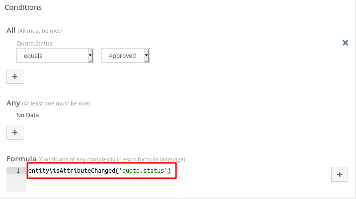 I would like to create a workflow based on the target entity "Quote Items" with conditions on Quote changes. Exactly I would like to trigger the job every time that the Quote status became "Approved". So the filters that I would like to use are:
