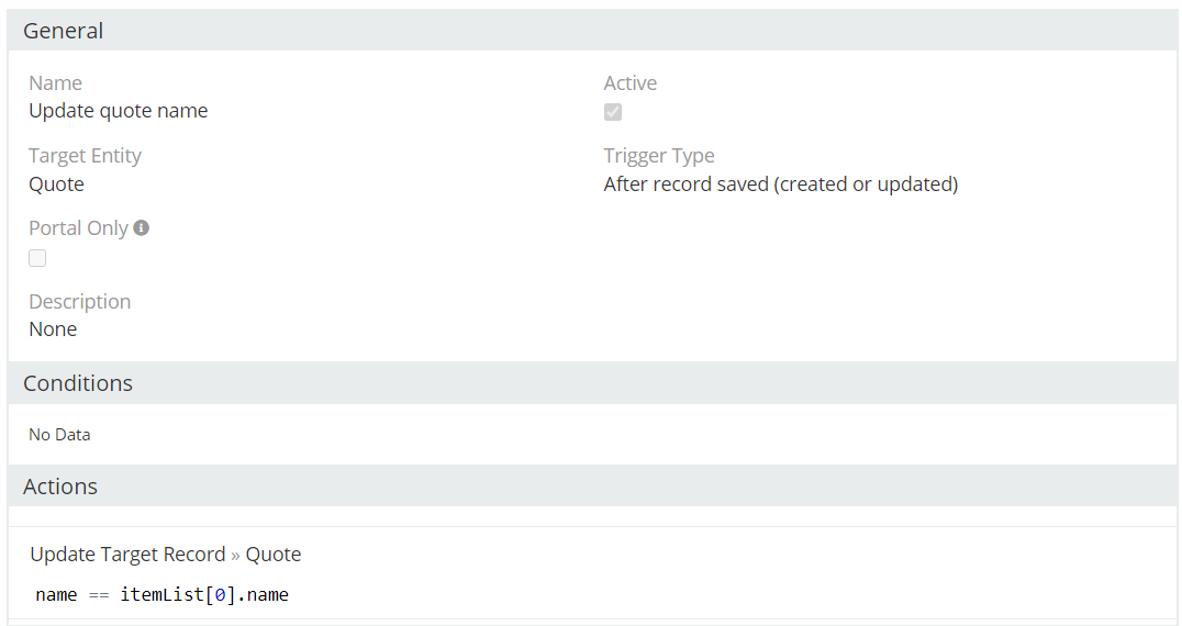 Now I want to use the same logic for the quote name. For example Quote Name = the different quote items name.