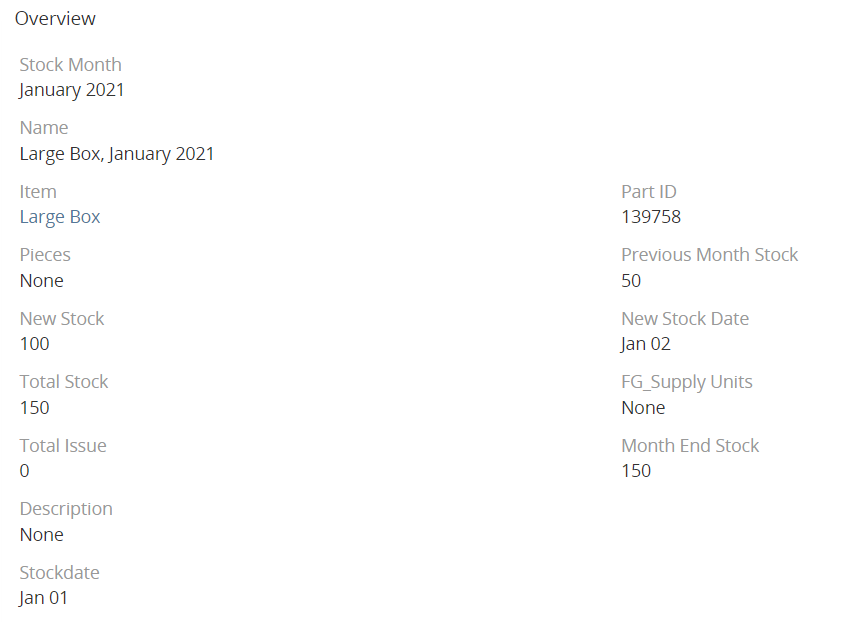 Each month there will separate record for Stock and above one for Jan 2020 and only for one item.