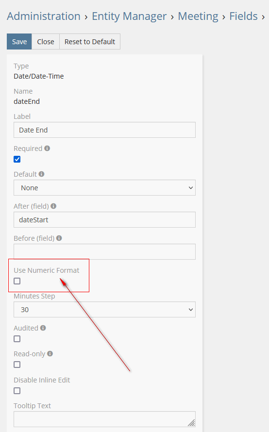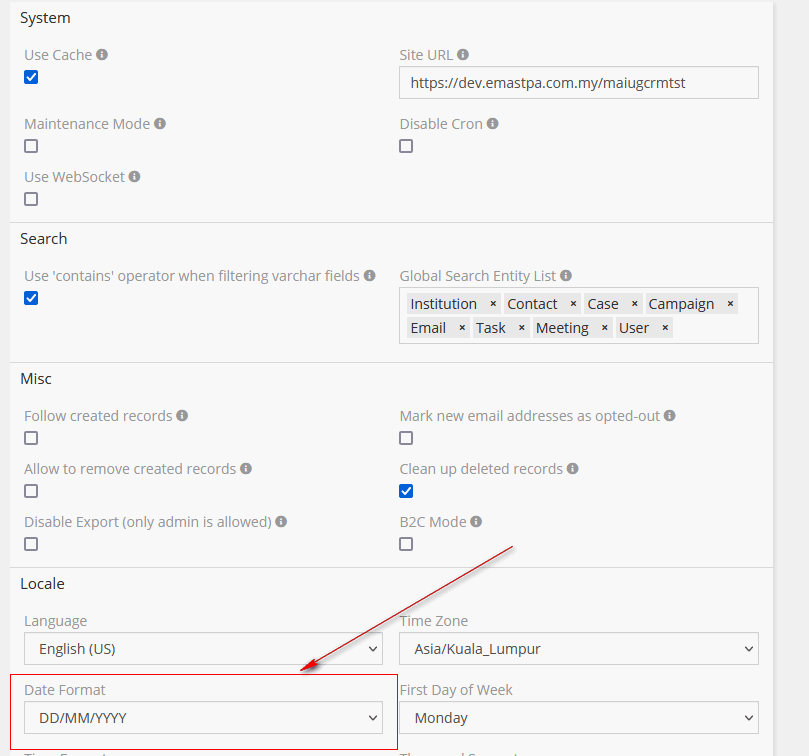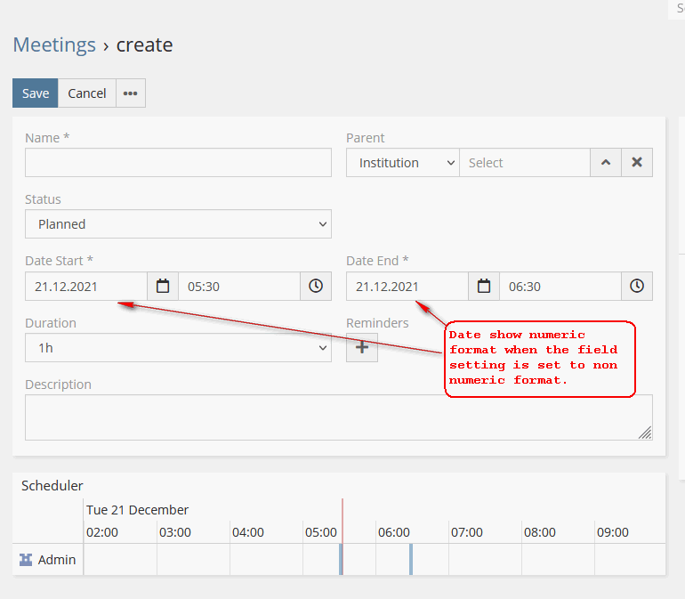 Thank you for responding. The settings for the field is shown in the screencap below. I tried changing to various format in the Settings option under administration but nione seem to work. There are only 2 areas where i can set the date format - Settings and Field. The same is happening to the standard meeting form. It appears that the settings is ignored. Please help.