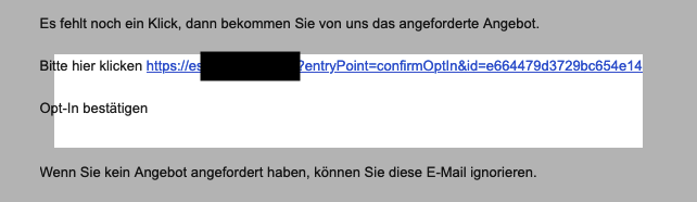 for a lead. This person now receives a mail as an opt-in. I have added the variable {optInLink} to the mail template, but when the mail is delivered, the link is empty. What is the reason for this?​