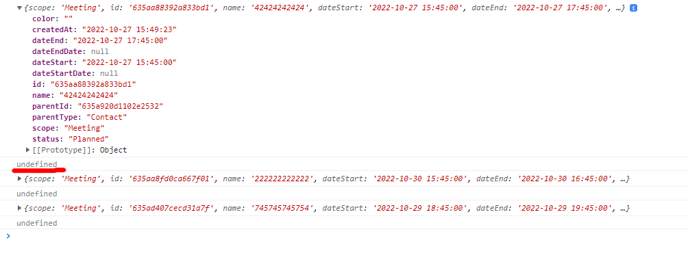 Changed the calendar.js, added a field name to it account. The console displays undefined.