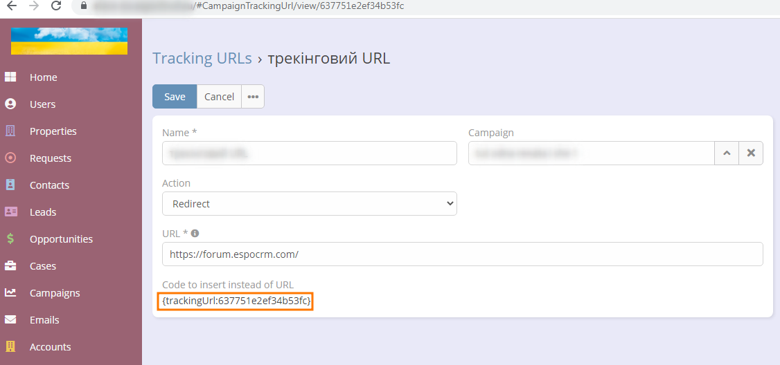 I. We go to https://your_espocrm_instance_domain...ignTrackingUrl and create our Tracking Url (screensot 1), where we immediately indicate the link where we forward the recipient of the email, and copy it.