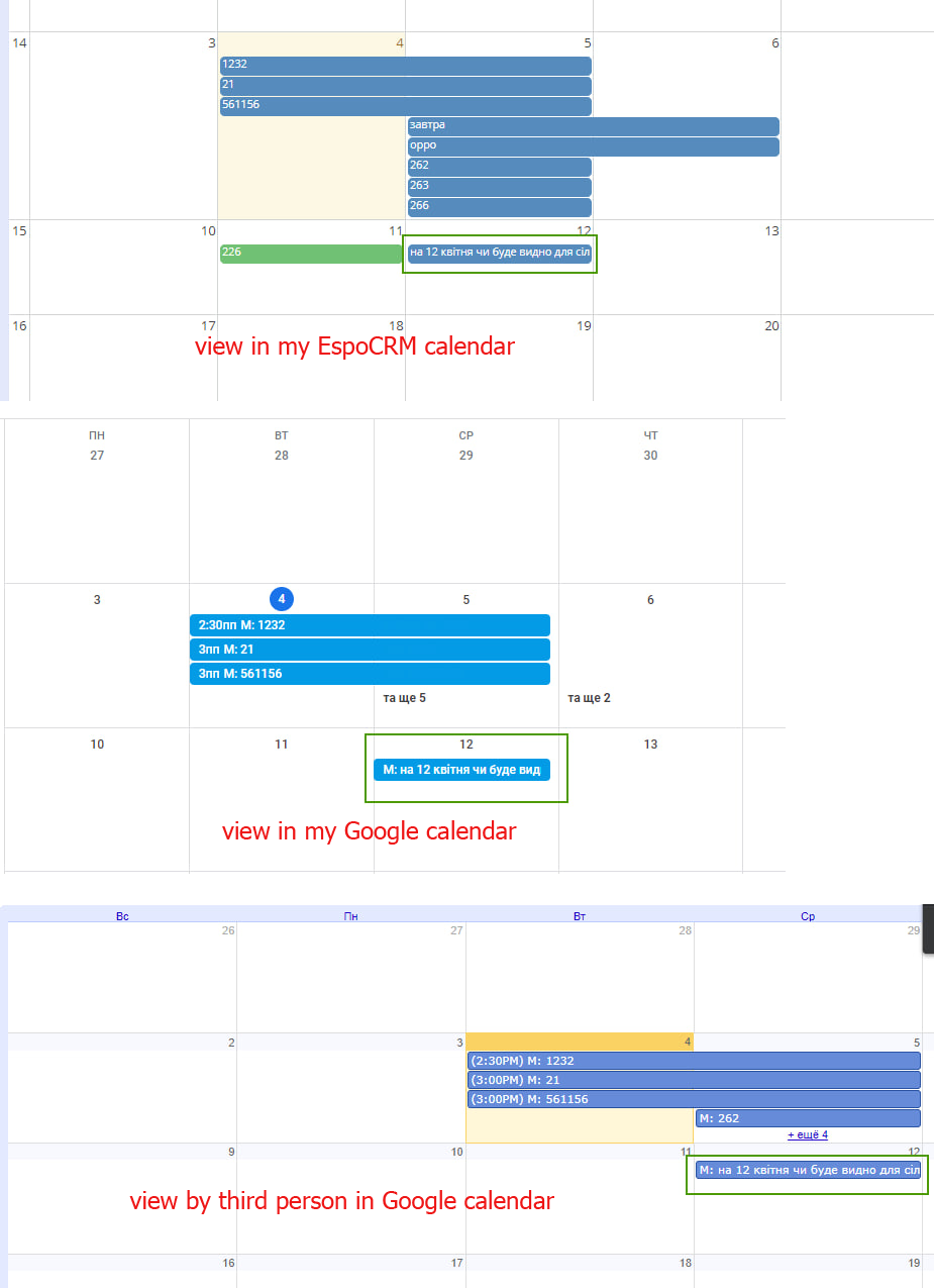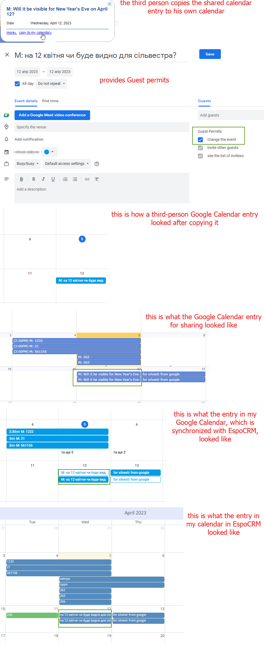 If i create an entry in espo crm calendar which get synced to the Google calendar, its not visible for the person B.