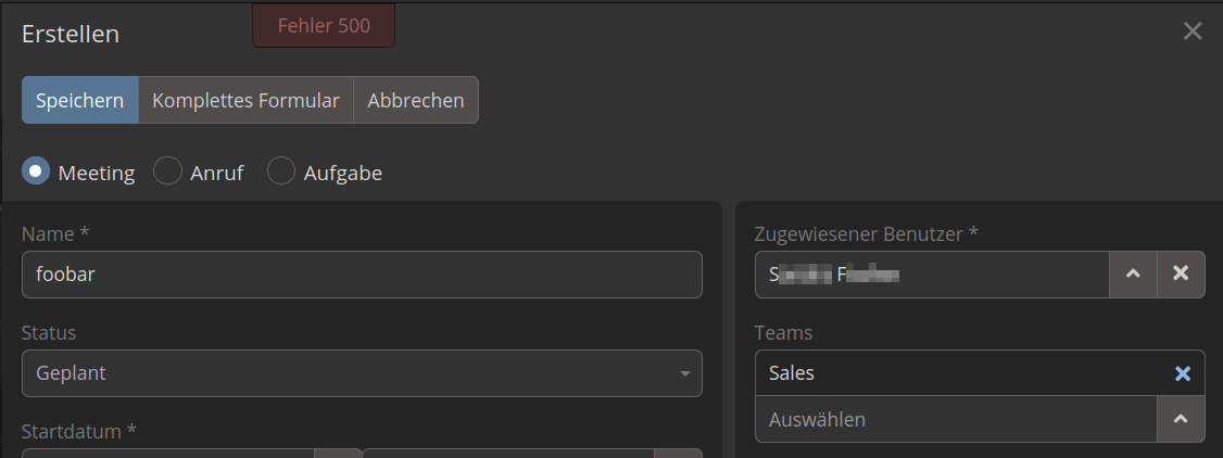 user of mine get this error, when they save a created meeting. i guess it is (maybe) a problem with assigned rights in the users roles, but i dont find the reason.