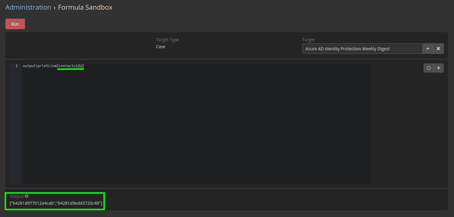 The entity I'm using is Cases, I have tried various formula of attribute. (contact.contactIds for example), and array\formula(), and directly getting the info just using the fieldname itself but I'm failing.