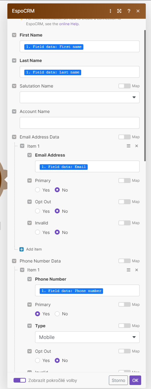we are using make.com to create leads in our system after filling the form on facebook. Everything is working perfectly fine except email field.