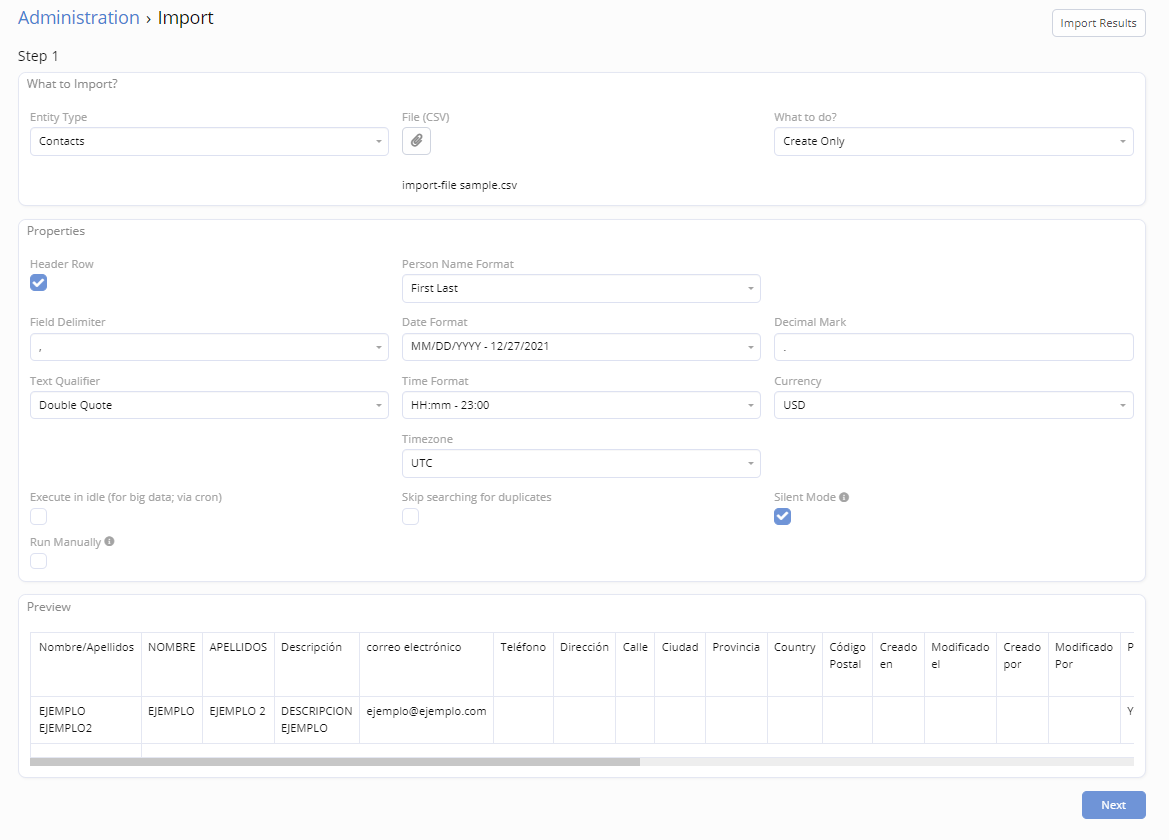 I have even used the impor-file.csv file generated by EsporCRM and the same thing always happens, it does not give any errors or import the contacts.