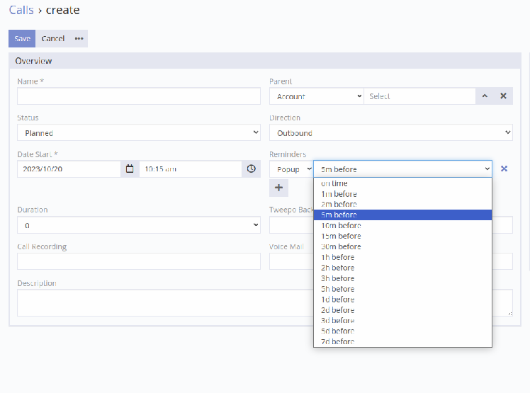 Previously, while creating a Call or a new Meeting we could configure the Reminder in such a manner. See below: