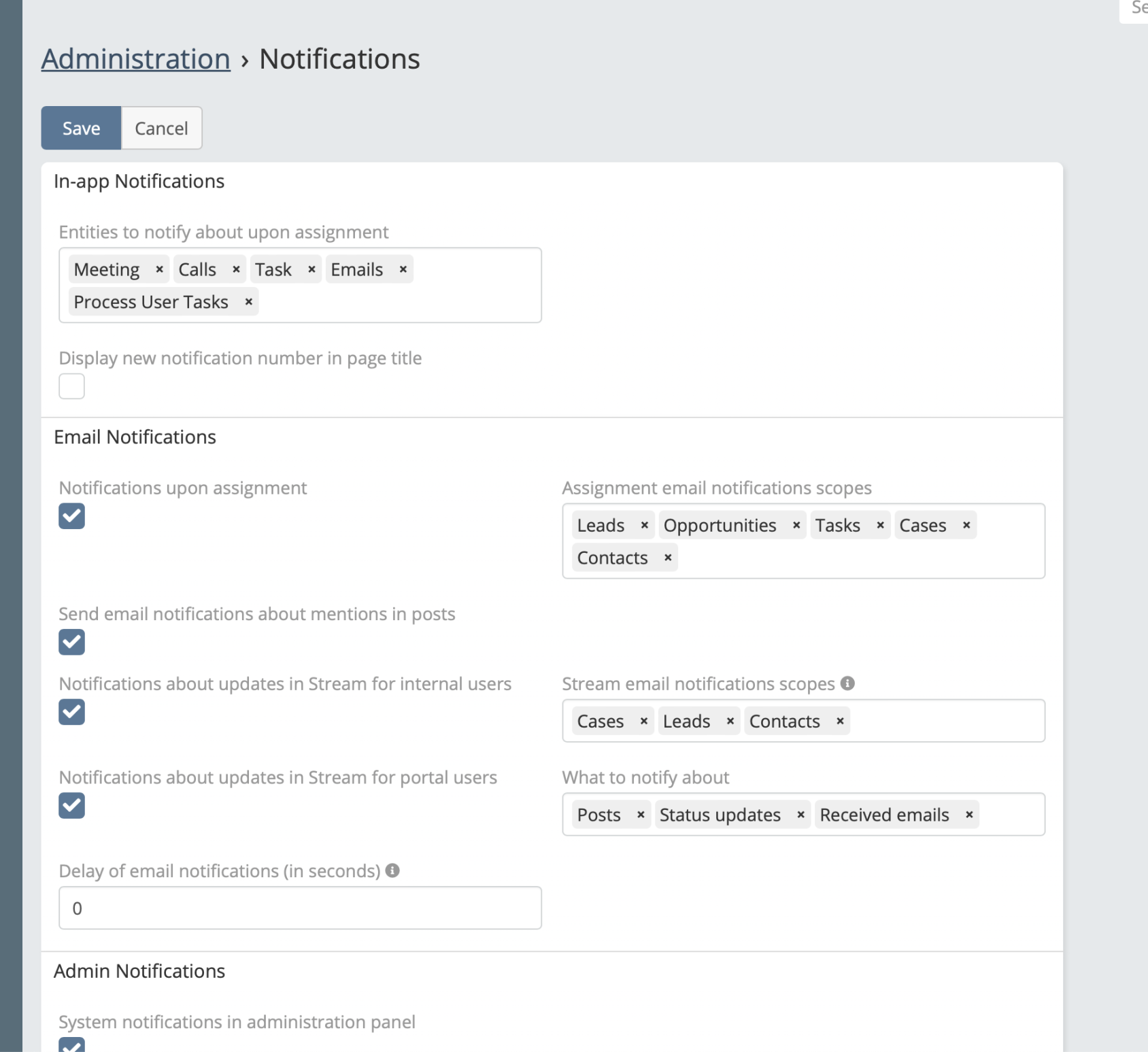 This is for the first time across 10+ installs, outbound email setup ok, test email sends ok, any normal emails ok, jobs are executing fine, crontab is ok, however, when posting a note (or upon assignment) system doesn't sends an email, any ideas?