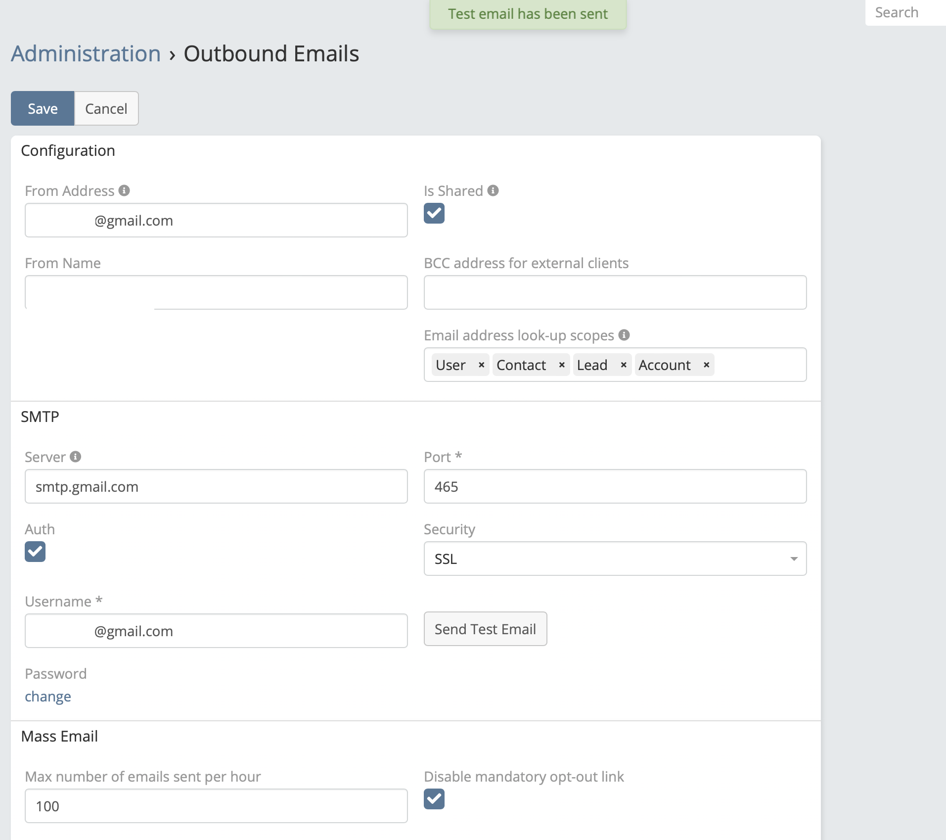 Make sure you set up the Outbound Emails​ on Administration because crm will use it to send the system emails