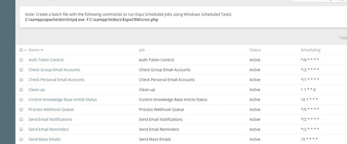 Таня, спасибо. Ну вот что я сделала: создала на CD: C файл с расширением .bat, в котором прописала команды которые указаны в скриншоте. Потом зашла в планировщик заданий Windows и создала задание, где прописала путь к этому файлу. Это всё?в EspoCRM в заданиях планировщика надо что -то делать?