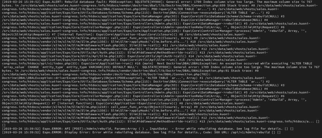 However if I want to try a new upgrade I receive the error :ERROR 500 " Error while rebuilding database"