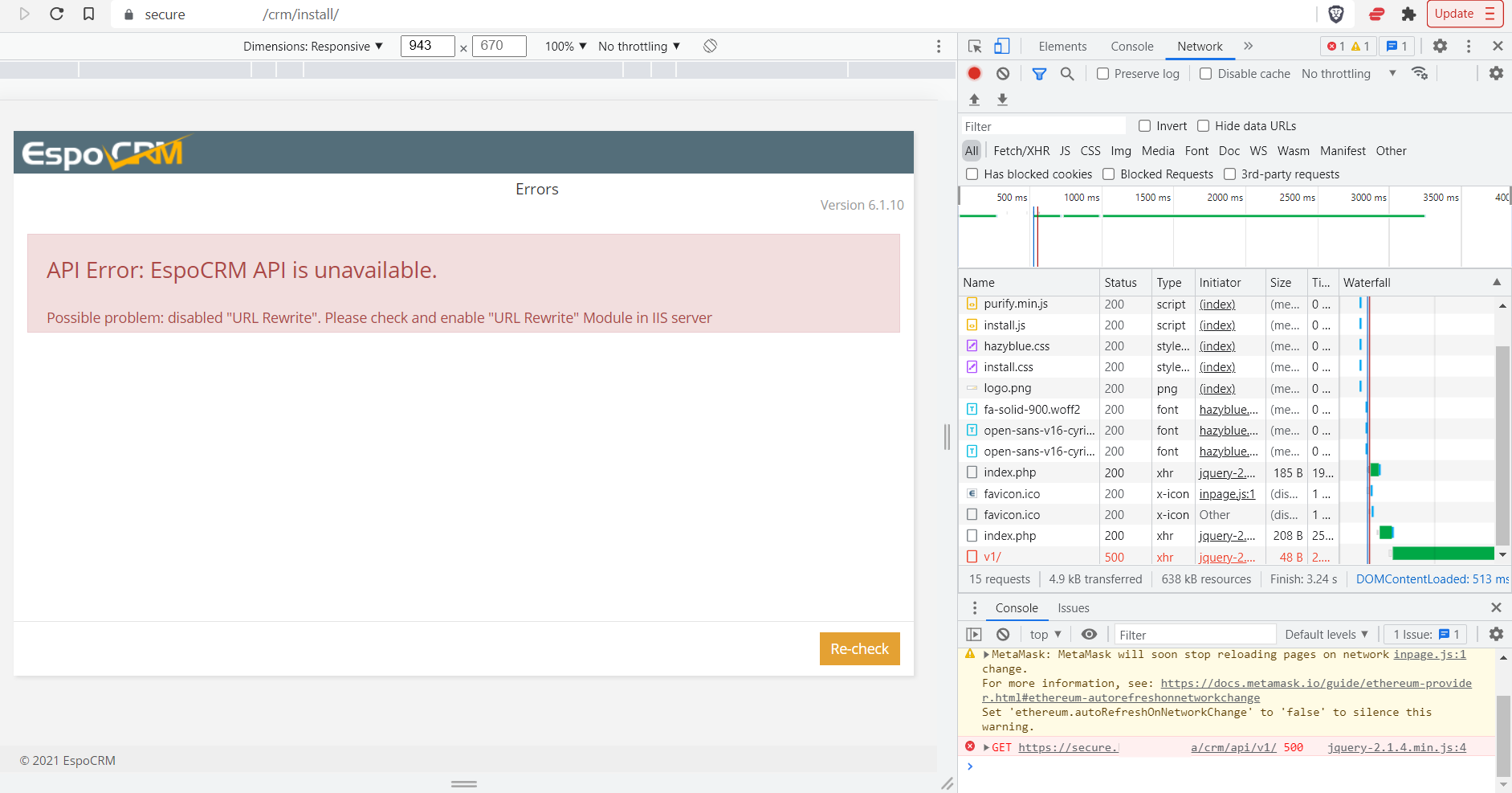 Mime types all set, URL rewrite installed, all working - but I can't proceed past this error.