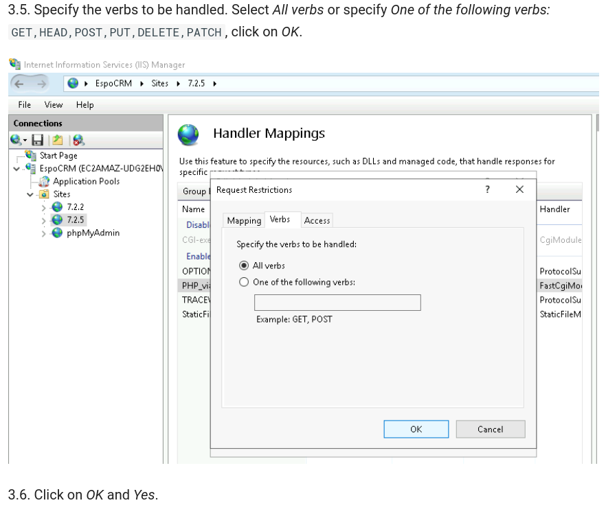 The new CRMESPO instance is on Windows OS. Full permissions already.