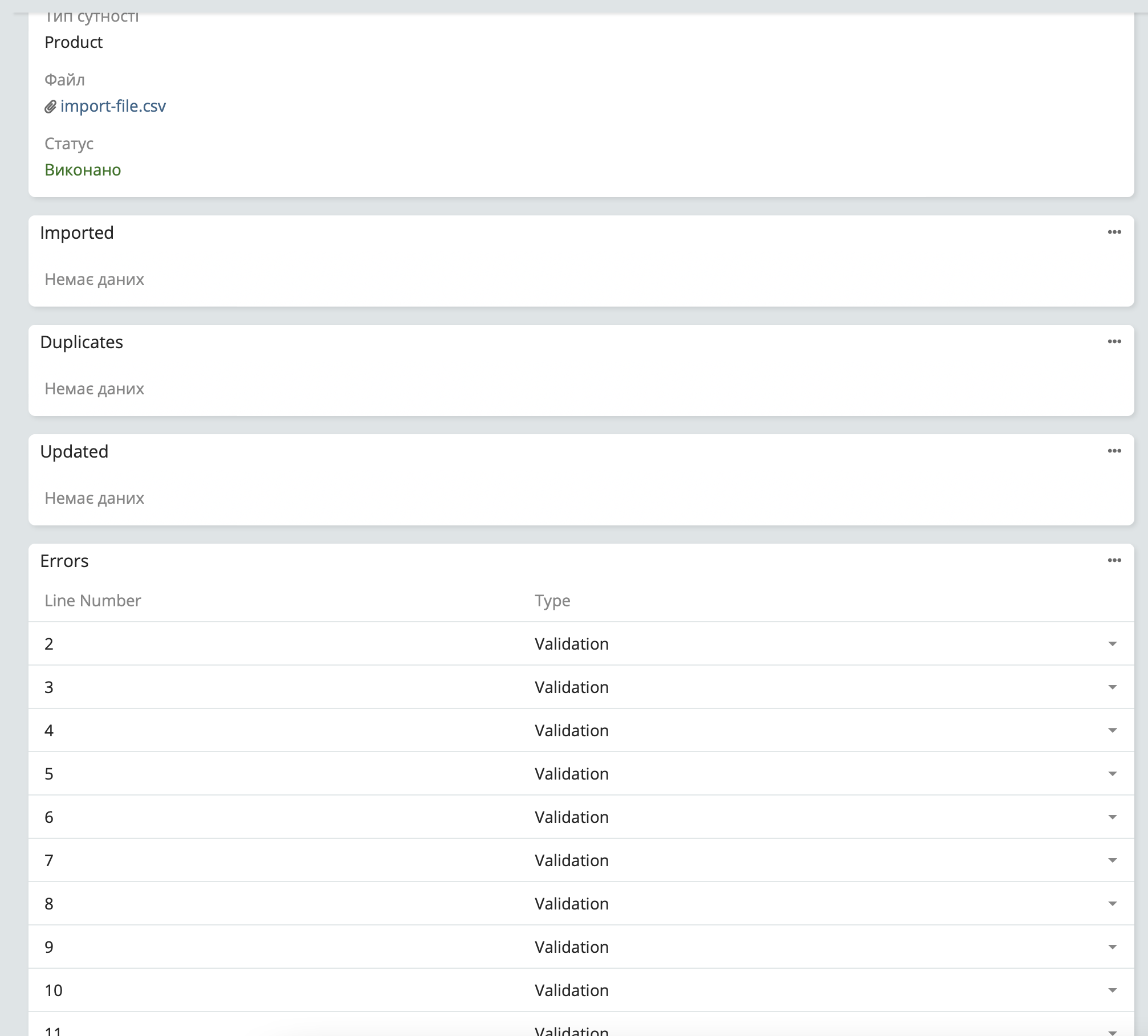 У версії EspoCRM 7.2 з'явилась функція відображення панелі помилок, які відбулись при імпорт (яку Ви можете бачити на третьому скріншоті).