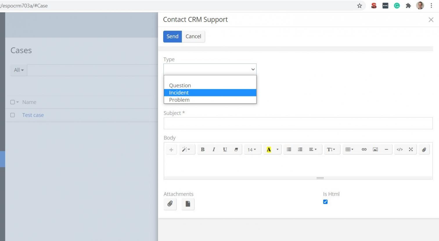 The idea is, that my CRM clients could reach me easily (if they encounter a problem using CRM) by clicking one button on the top right corner and sending a pre-filled email with their message.