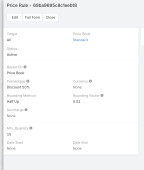 I found the cause: If there is only one price (or multiple) in the template with a min quantity, the rule is not applied. If there are two price entries,...